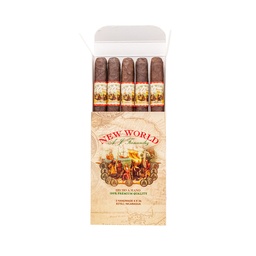 Tabashop a le grand plaisir de vous présenter cette nouveauté de la manufacture AJ Fernandez: le New World, un short Panatela emballé par 6 pièces dans une belle boîte métallique premium, joliment décorée et pratique pour voyager. Un test rapide après repas, avec un vieux rhum, a représenté la surprise d'une véritable potion magique, moyennement forte à corsée. Le cigare est entièrement roulé main, avec un tabac 100% nicaraguayen. Nous l'avons reçu il y a quelque temps, mais la demande était tellement forte que nous avons du en recommander. Nous pouvons ainsi vous le proposer sur notre boutique online.