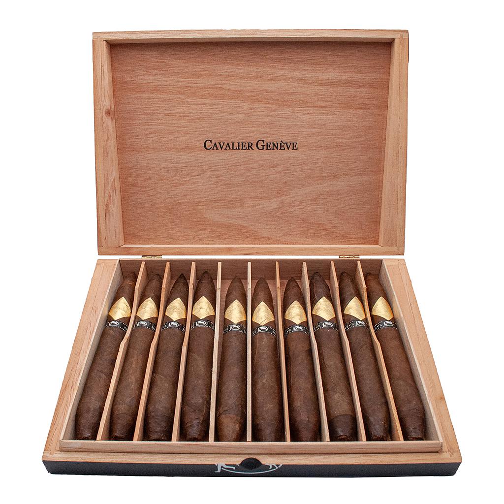 Tabashop est heureux de proposer ces modules Black Series II de chez Cavalier Genève, dans ce magnifique format Salomones, sur lequel se pose majestueusement la feuille d’or 24 carats - comestible - caractéristique de la marque. Les cigares Black II Series ont été conçus pour le marché US et sont un peu plus forts que les White Series. C’est malgré tout un cigare moyennement fort, très crémeux, avec des notes boisées et poivrées bien contenues. La cape huileuse et brillante, très fine, provient de la vallée de San Andres, au Mexique. Les autres tabacs proviennent du Nicaragua.