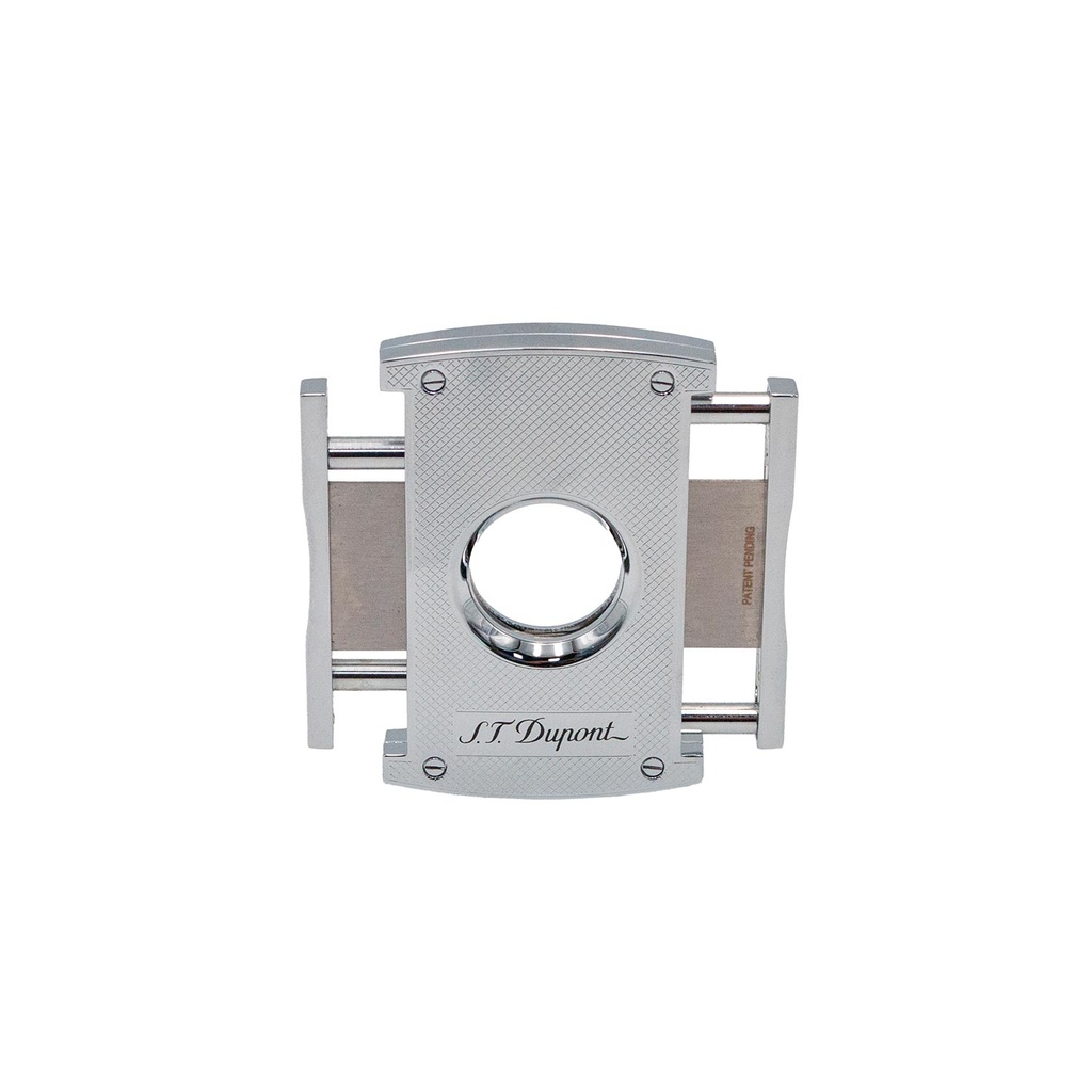 Un coupe-cigare double lame de chez S.T. Dupont, pour préparer vos cigares avec une coupe droite. Il s'agit de la nouvelle génération de coupe-cigares de la maison Dupont, dotés de mécanismes à ressort et de lames aussi tranchantes que celles d'un rasoir, pour une coupe systématiquement parfaite.