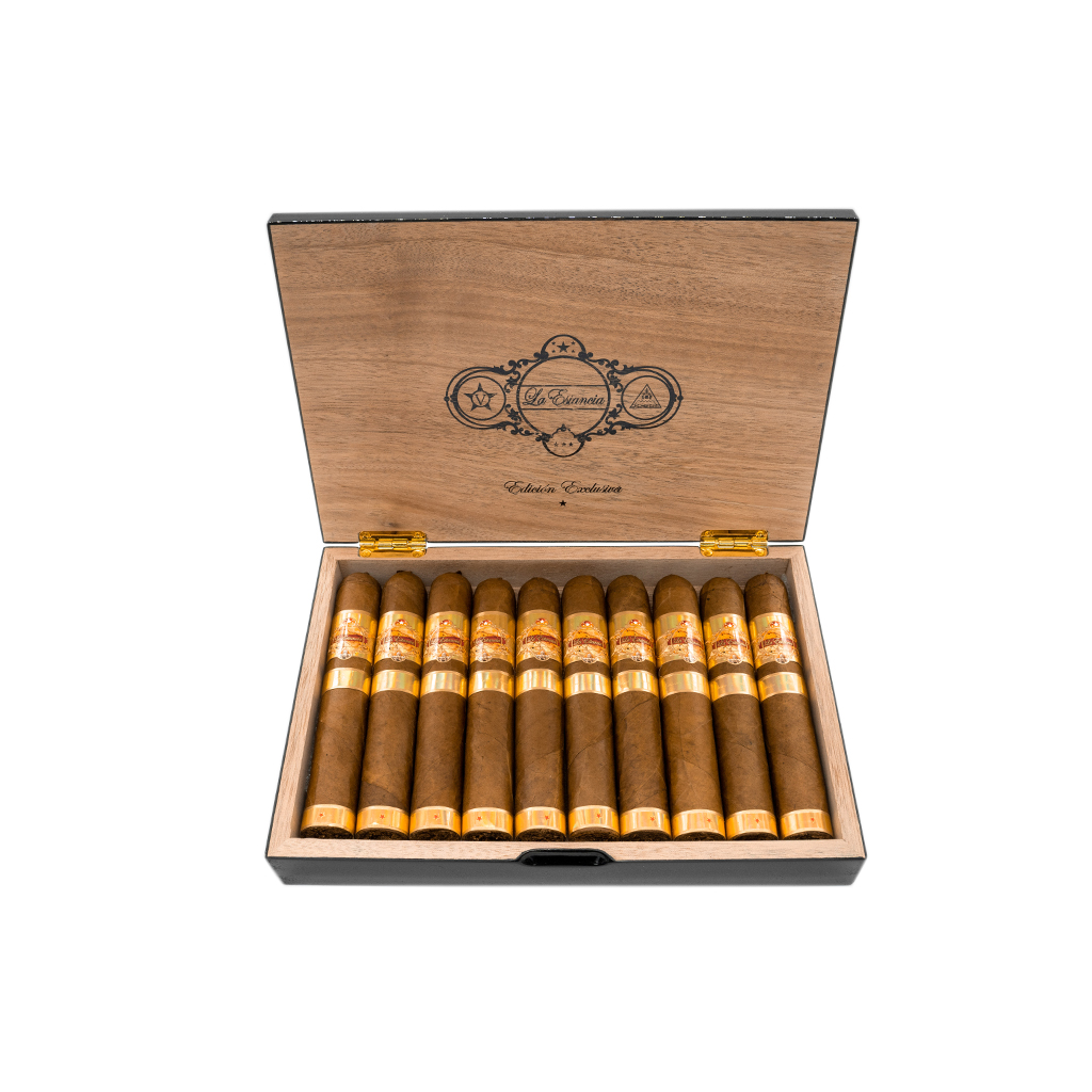 Il fallait l’oser, ils l’ont fait!Un projet de création qui aura duré plus de trois ans durant lesquels Jeremiah et Joshua Meerapfel, 5èmes d’une génération de producteurs d’une des plus anciennes dynasties du Tabac au monde!Il viennent de créer un cigare "ultra premium" La Estancia Edicion Exclusiva!La famille Meerapfel est connue pour sont patrimoine et leur expertise dans le secteur du tabac depuis 142 ans. Ils ont cultivé et vendu du tabac provenant du monde entier: Cuba, République Dominicaine, Cameroun, Honduras, etc...La Estancia Edicion Exclusiva est une vraie pépite contenant les meilleurs tabacs, mais surtout du tabac Cubain qui date d’avant la révolution, ce qui rend cet assemblage incroyable! Un cigare rond avec des arômes délicats de café crémeux et de noisettes grillées, et un troisième tiers boisé. Le tout avec un tirage parfait. Chaque cigare est roulé par les torcedors les plus expérimentés, avec la même finition que les BHK. Encore du jamais vu avec la triple bague holographique entièrement dorée qui est du plus bel effet. Des chefs-d’œuvre entreposés dans un coffret laqué noir piano. Yann Monbaron et le team Tabashop sont encore émerveillés par cette découverte! Ce cigare va ravir le palais des havanophiles.