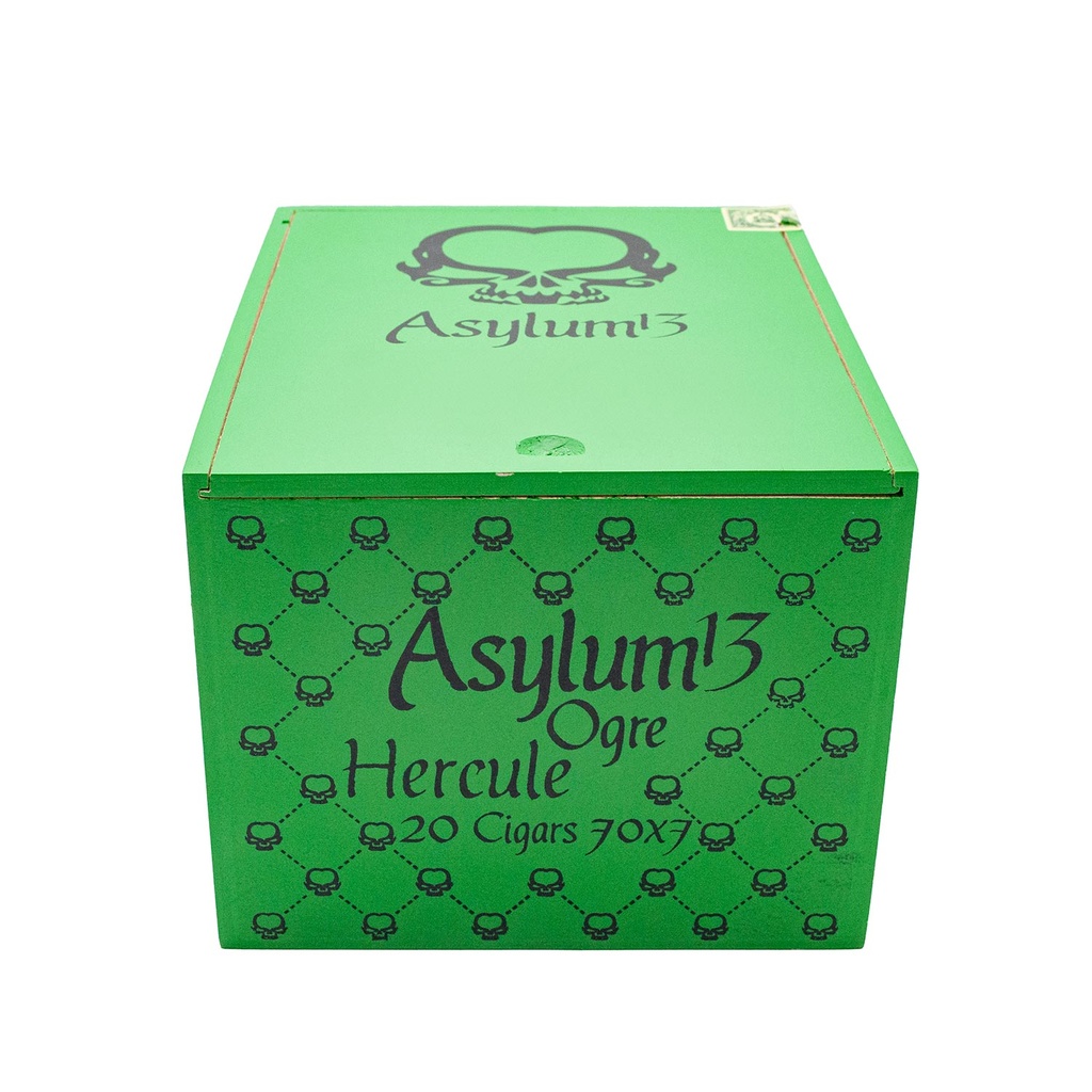Cette nouvelle marque, que Yann a découverte en Allemagne, vient compléter l’assortiment de cigares hors norme du Tabashop «Asylum» a une signification de folie, que les bikers apprécient particulièrement, avec sa bague ornée de têtes de mort). Dès l’allumage du «Hercule» (17,8 cm de longueur pour un diamètre imposant de 2,7 cm.), on perçoit des arômes de terre, de cacao, de café avec une note poivrée. Avec plus de 2 heures de dégustation, ce cigare du Nicaragua, moyennement fort, a un rapport qualité/prix très intéressant.Un cigare de belle qualité, avec une cape bien grasse et légèrement nervurée, couleur maduro, dans une boîte en cèdre de 20 pièces, dont le couvercle très pratique peut servir de plateau-présentoir.