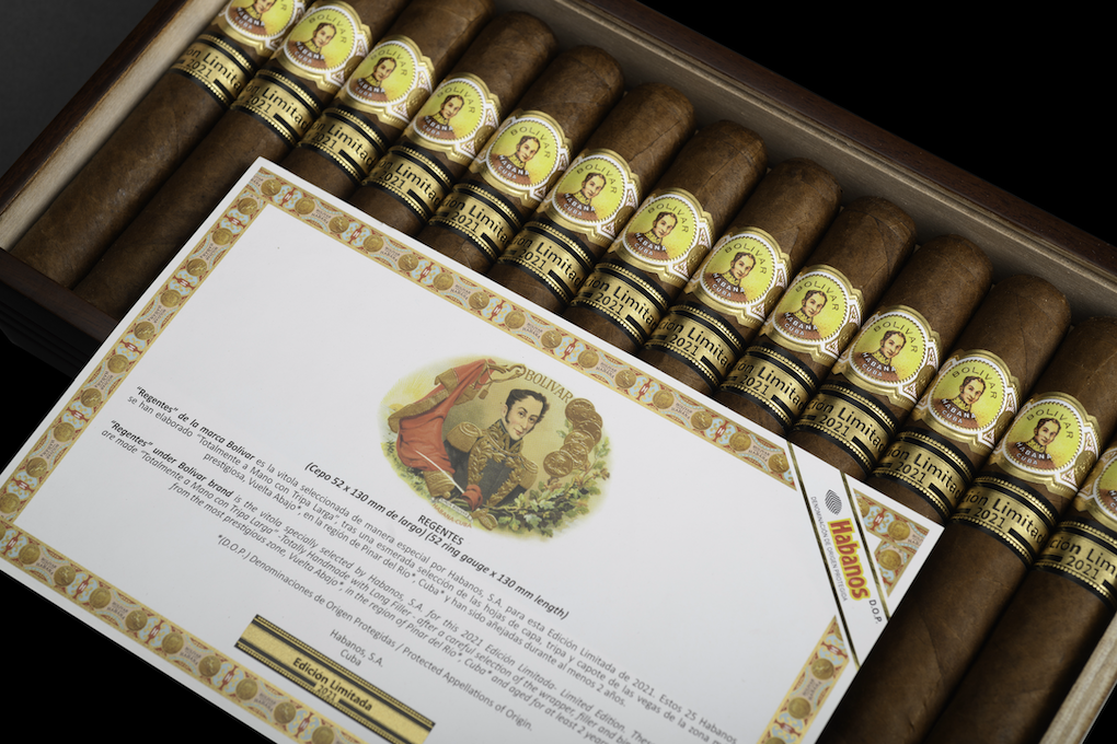 Les Bolívar Regentes (ring 52, vitole Discretos) sont présentés par 25 dans un élégant coffret spécialement conçu. Ils sont bien entendu entièrement roulés à la main, avec des feuilles sélectionnées provenant de la zone Vuelta Abajo, connue pour produire les meilleurs tabacs du monde. Vieillis durant deux ans, comme toutes les éditions limitées, ils se caractérisent par l'intensité, la force et les riches nuances typiques de la marque Bolivar.
