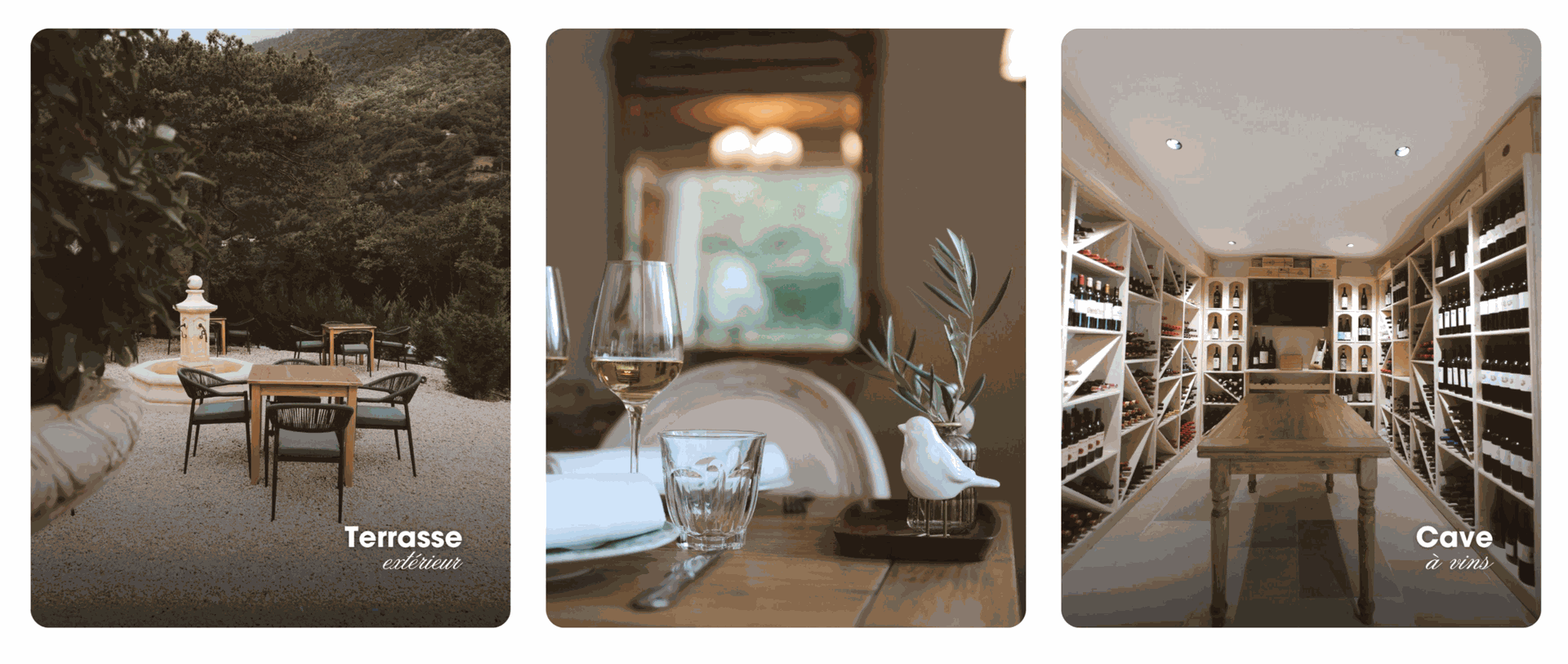 Fer forgé, bois brut et murs de pierre composent une atmosphère chaleureuse où la gastronomie devient mémoire et le partage, éternité.