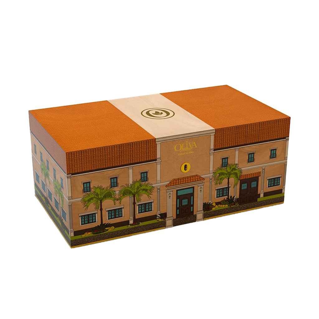 Pour ce projet, une magnifique pièce de sculpture sur bois dans le plus pur style « marqueterie » sera à la fois un humidificateur exclusif et une réplique exacte de Tabolisa 1, l'unité de production construite par Oliva à Estelí, au Nicaragua, pour devenir l'incarnation de la philosophie perfectionniste d'Oliva, contrôlant, entretenant et optimisant le processus de la graine au cigare. Pas plus de 123 de ces étuis seront commercialisés.