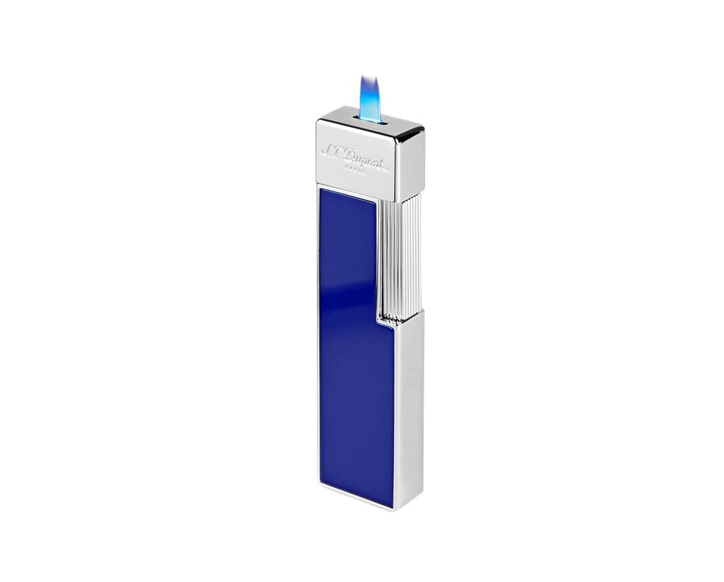 Le nouveau briquet S.T. Dupont Twiggyen laque bleue et finitions chrome est élancé. La laque souligne sa silhouette et incarne l'esprit des années 1960. Avec sa flamme torche plate de 1 cm, idéale pour