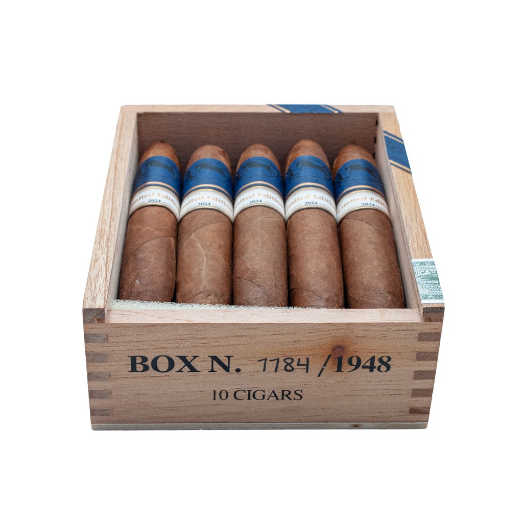 Cavalier Genève nous présente son édition limitée de l’année 2024, un cigare très attendu au format  Flying Pig. Avec un assemblage de tabacs rares et tenu secret, comme pour les éditions limitées depuis 2018, la dégustation promet harmonie et complexité. Il n’existe que 1948 boîtes de ces cigares. Un nombre qui fait référence à 1948 degrés fahrenheit, la température de la fusion de l'or.