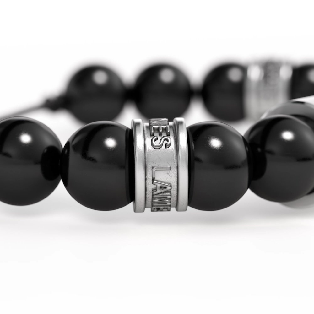 Sobre et élégant, ce bracelet en onyx noir comporte deux anneaux qui affichent fièrement votre marque préférée.