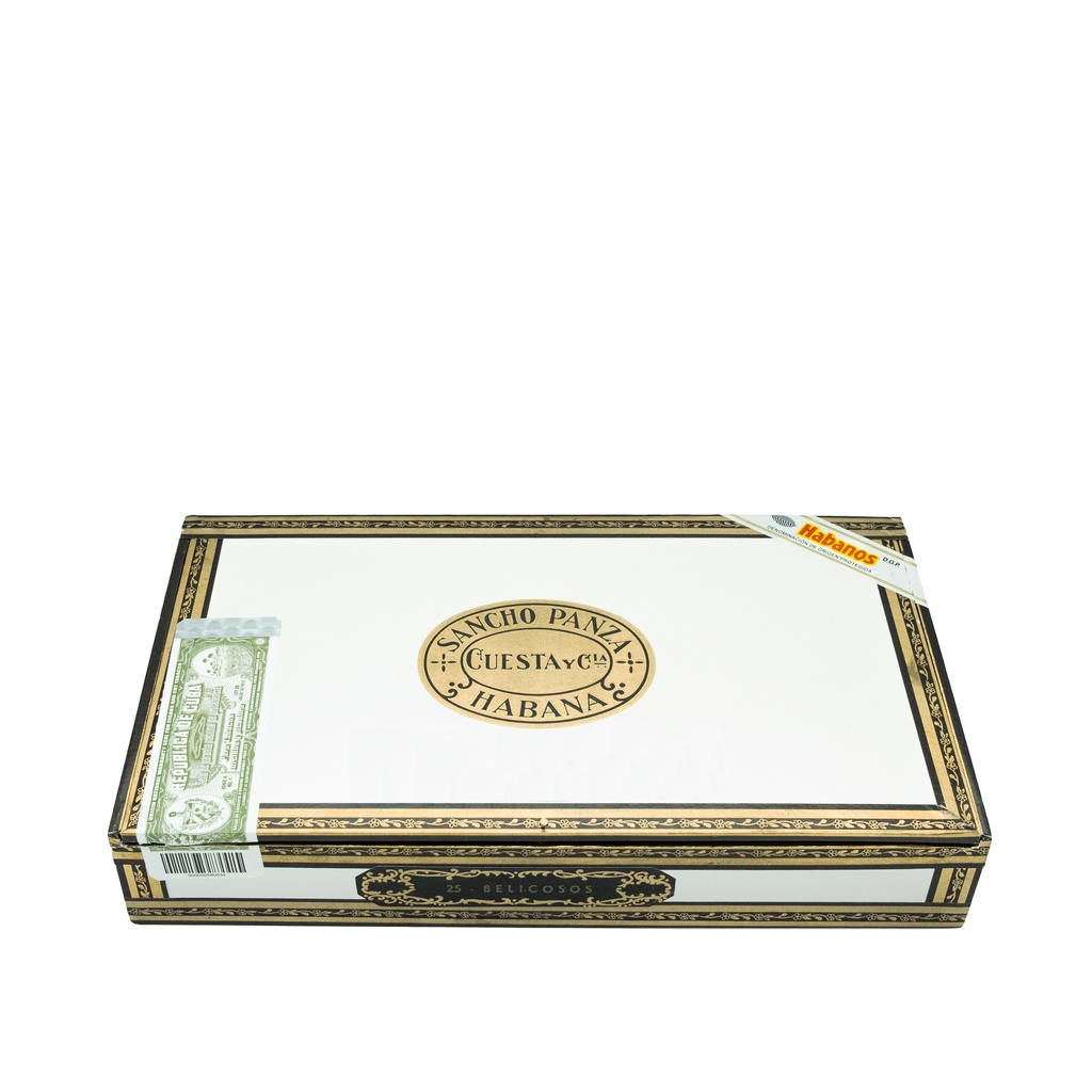 Sancho Panza Belicosos, cet obus est présenté dans une fine cape à l'aspect colorado. Les notes sont essentiellement terreuse. Dès l'embrasement, le havane offre un tirage facile transportant dans sa fumée onctueuse des arômes boisés, accompagnés de touches de moka torréfié et d'humus. Le deuxième tiers confirme la bonne construction aromatique avec en arrière plan des notes de cuir et de poivre. Le rythme est bon jusqu'au dernier tiers, un cigare pour les grandes occasions.