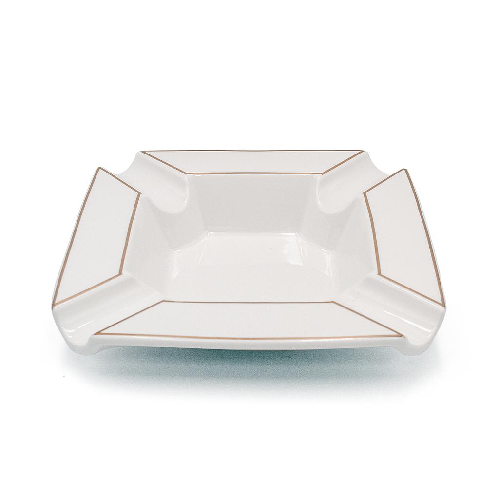 Un look intemporel pour ce cendrier carré en céramique avec ses rebords dorés.