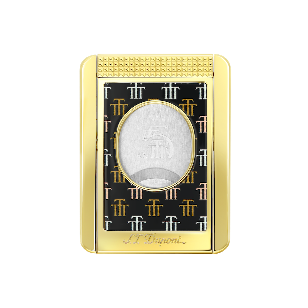 Ce coupe-cigares doublé d’un stand / repose-cigares est décoré du monogramme Trinidad en laque brillante et finitions dorées.